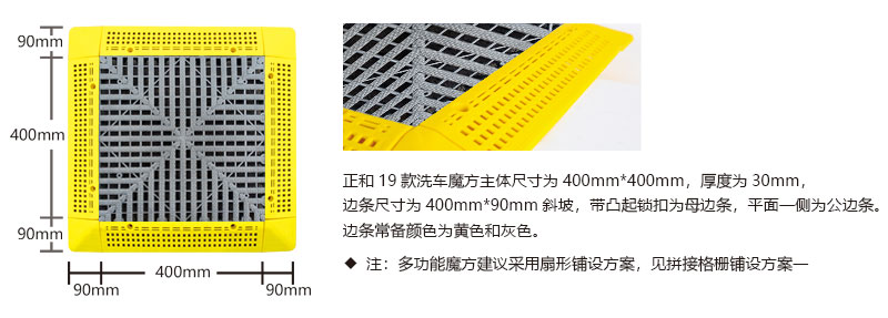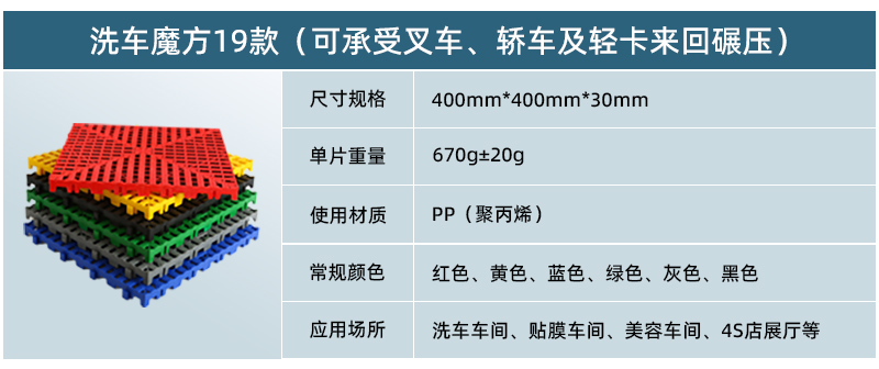 正和19款洗車(chē)魔方是正和公司2019年推出的新品,該產(chǎn)品厚度為30毫米,采用更為粗壯的加強筋和更為寬大的面層設計,是目前載重、抗沖擊效果最好的產(chǎn)品。