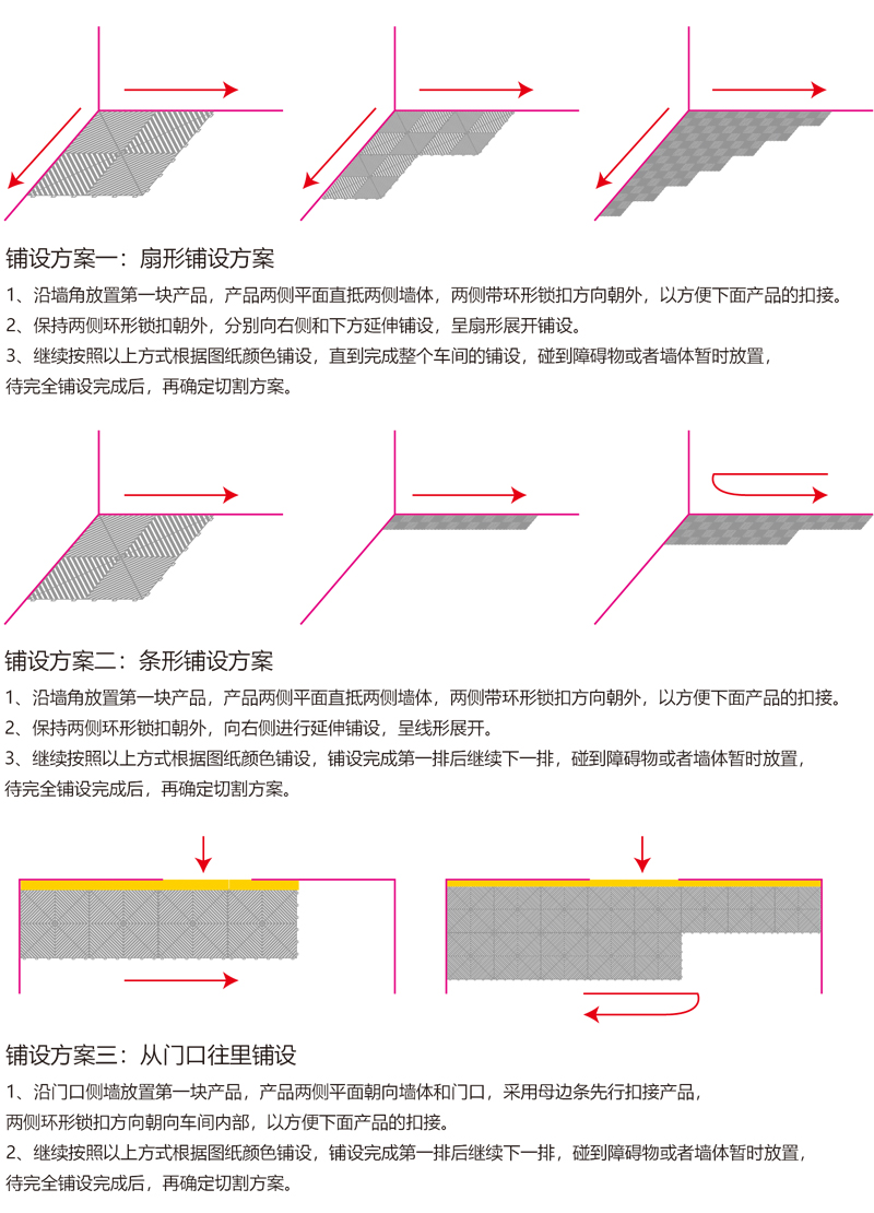1、大孔徑排水、排泥沙更通暢。 2、鉆石紋面層設計,防滑美觀(guān)。 3、加強鎖扣設計更牢固,適用于凹凸不平地面