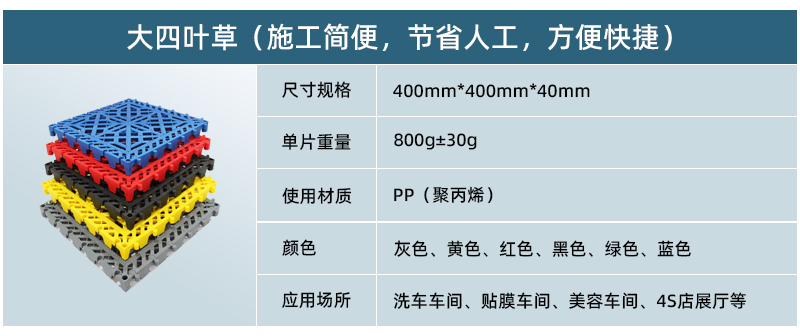 正和大四葉草產(chǎn)品厚度為40mm,是2018年正和公司最新開(kāi)發(fā)的全新洗車(chē)車(chē)間專(zhuān)用產(chǎn)品。